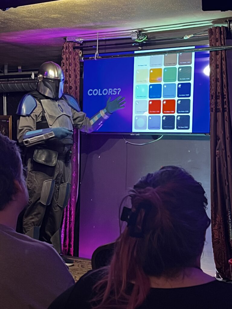 Mason teaches us about 3D printing at our April show, sporting his home printed Mandalorian armor. Certifiably one of the top 10 most Nerd Nite things I have ever seen.